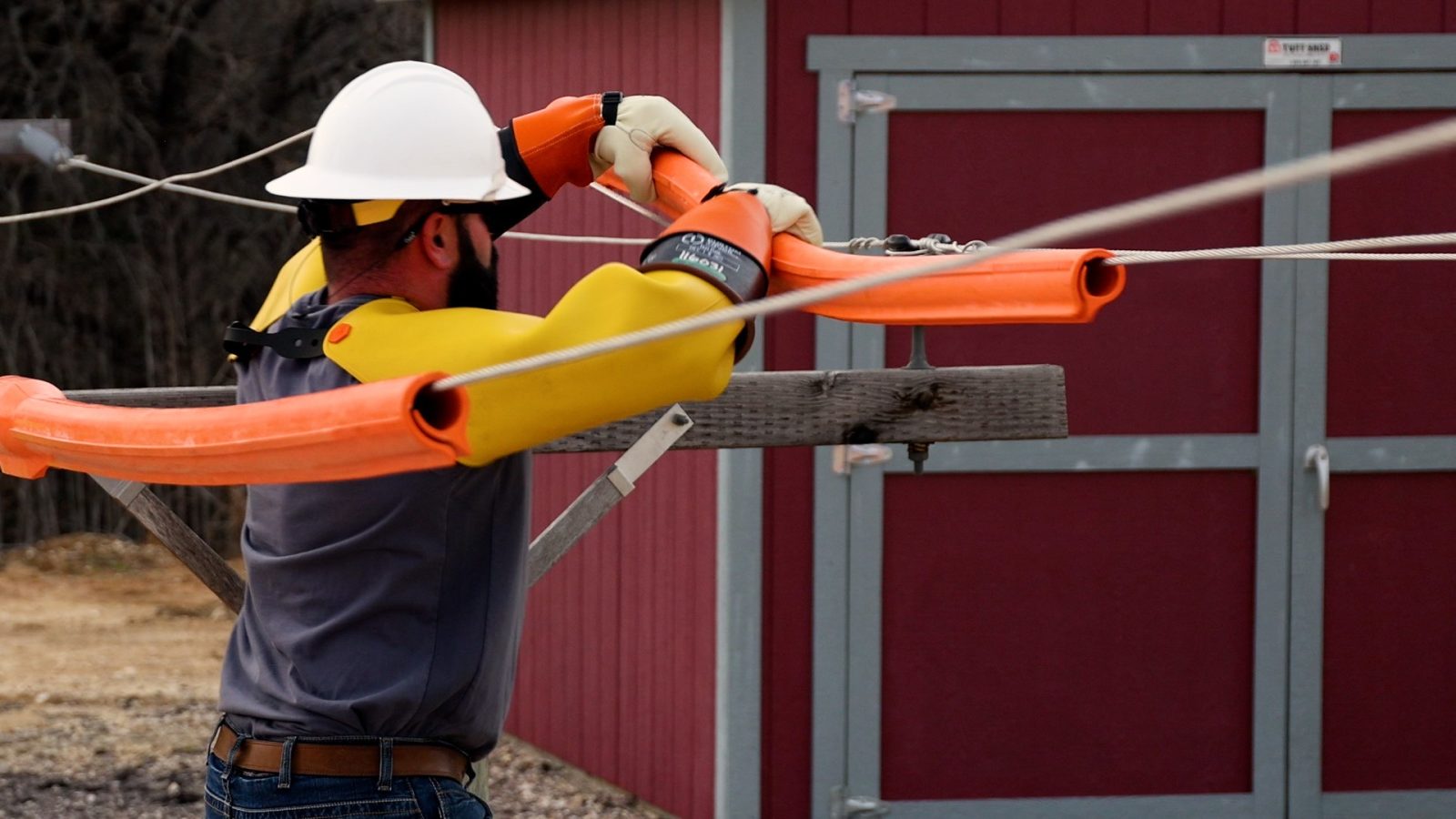 Each safety specialist wore rubber sleeves and gloves and performed simulated tasks a lineworker would do in the field. This included establishing earth grounds, finding minimum approach distances, and handling insulated “hot sticks.”