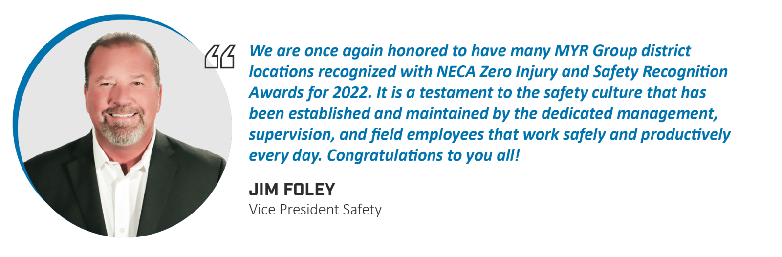 May 17, 2023 MYR Group Subsidiaries Awarded NECA 2023 Safety Excellence and Zero Injury