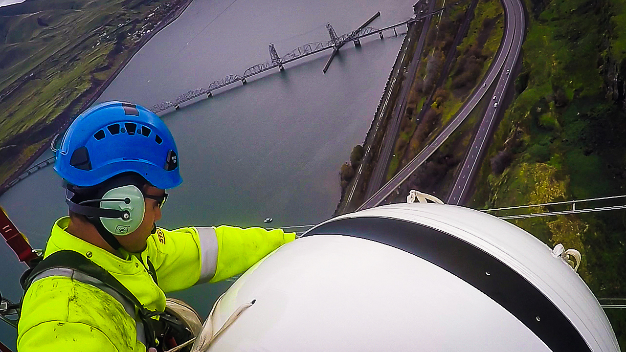 Sturgeon Electric crews installed 23 aviation marker balls and associated hardware atop BPA’s Big Eddy-Knight 500kV Transmission Line. The project marked the first time a federal nonprofit agency allowed a transmission line contractor to use Class B Human External Cargo (HEC) helicopter methods, which involves flying line workers below a helicopter in an “air chair” to accomplish the required work.