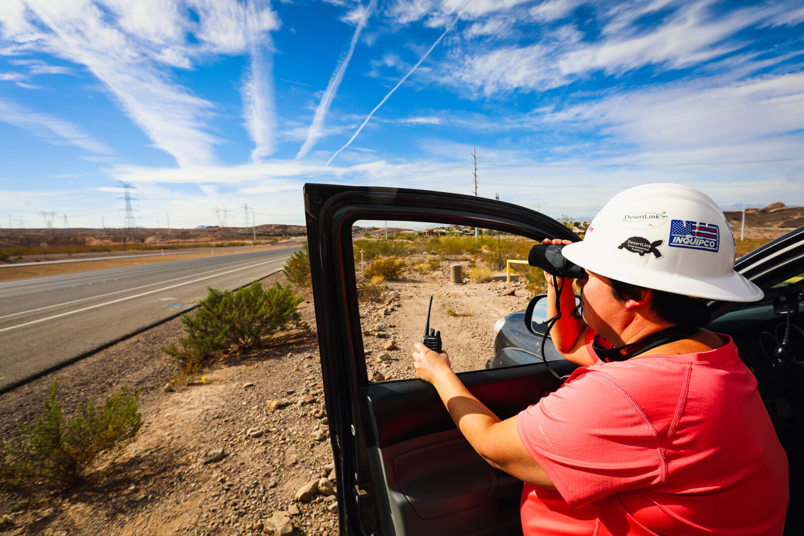 They also built all roads, landings, and pads; poured foundations; installed anchors; assembled several lattice towers; and pulled triple-bundle wire over multiple crossings in the highly crowded corridor dominated by broken, rocky, and uneven terrain. Additionally, they pulled triple-bundle 1590 ACSR conductor with OPGW in static position, over multiple high-voltage utility crossings in the highly-crowded utility corridor dominated by broken, rocky, and uneven terrain. Approximately 17 miles of the conductor on this project was attached to the vacant side of an existing NVE line.