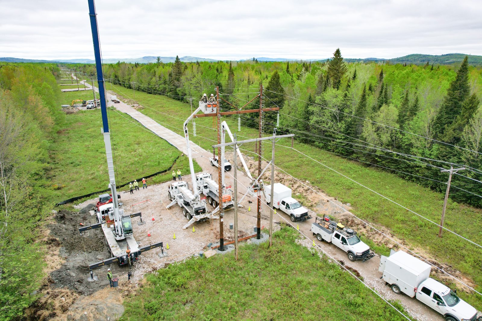 Harlan Electric’s scope of work includes the complete rebuild of a 115kV transmission line, including the replacement of 215 structures. Harlan Electric is reconductoring 27 miles of 795 conductor with 1272 through challenging terrain in the White Mountains of New Hampshire, utilizing “D” phase wire stringing techniques under energized conditions.